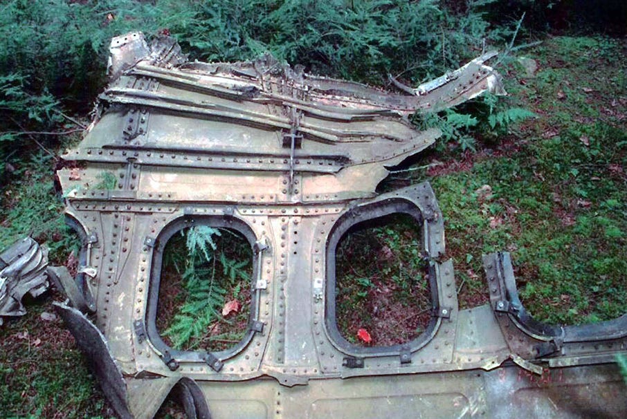 Regarding point two: This is a piece of the fuselage of Flight 93, which crashed on September 11th, 2001. It seems implausible that aliens crash and also that the wreckage can be flown. But perhaps these craft are so much stronger than our planes.