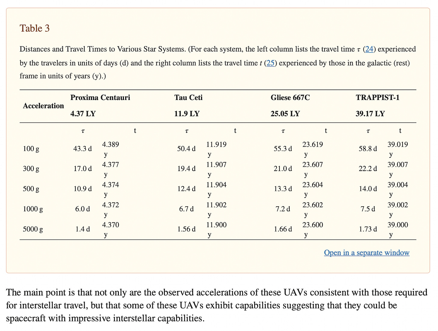 The authors write: “The main point is that not only are the observed accelerations of these UAVs consistent with those required for interstellar travel, but that some of these UAVs exhibit capabilities suggesting that they could be spacecraft with impressive interstellar capabilities.“